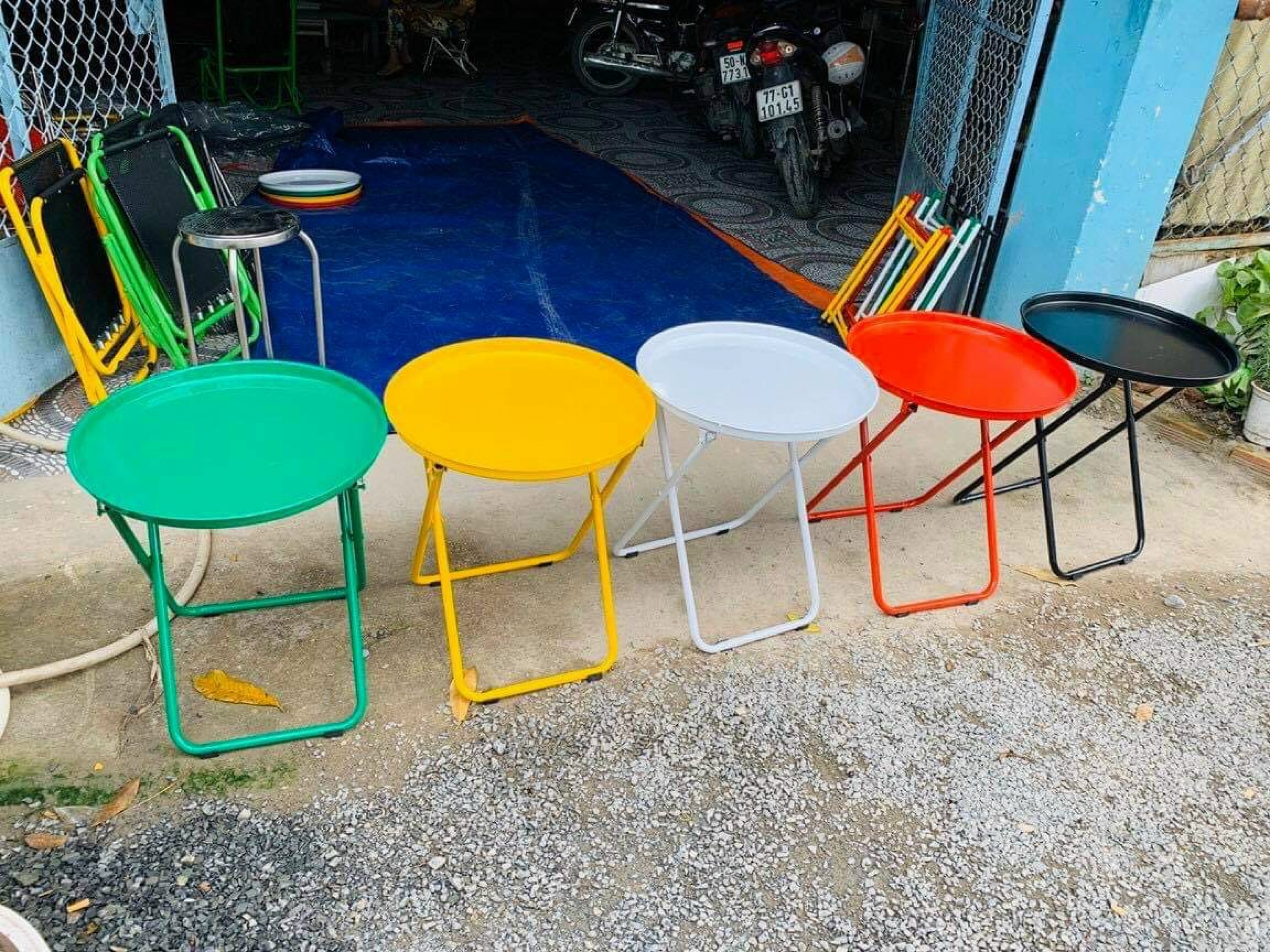 Bàn trà chanh xếp gọn mẫu mới với chân xếp liền bàn là một lựa chọn tối ưu cho không gian nhỏ hẹp . Sản phẩm có nhiều màu sắc : đỏ , vàng , hồng , xanh , trắng , đen . Phù hợp sử dụng cho gia đình, quán cafe trà chanh vỉa hè ...