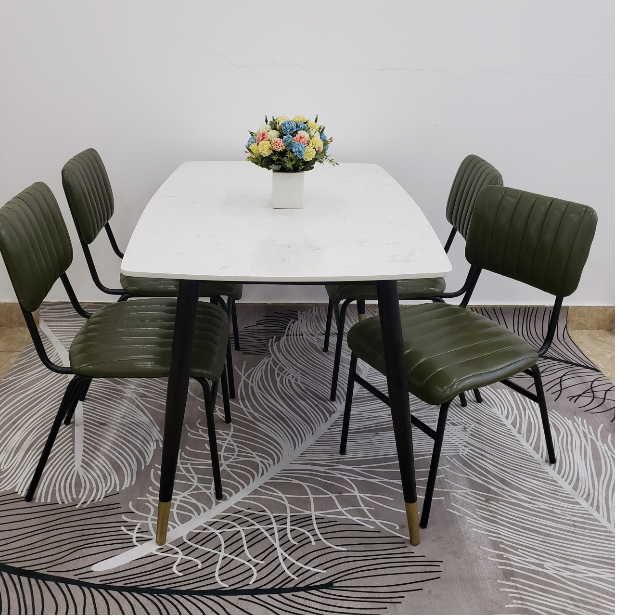 Bộ bàn ăn mặt đá chân sắt sơn tĩnh điện núm mạ đồng và 4 ghế lotte cao cấp bọc nệm với khung sắt sơn tĩnh điện chắc chắn, với thiết kế trẻ trung thời thượng cho bạn không gian sang trọng và quý phái  .