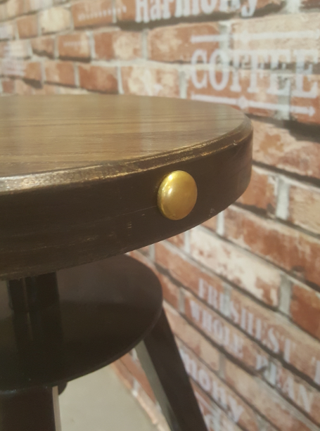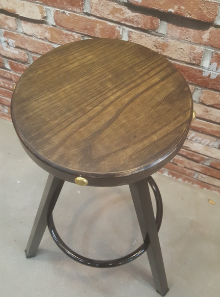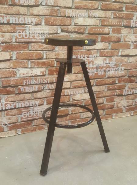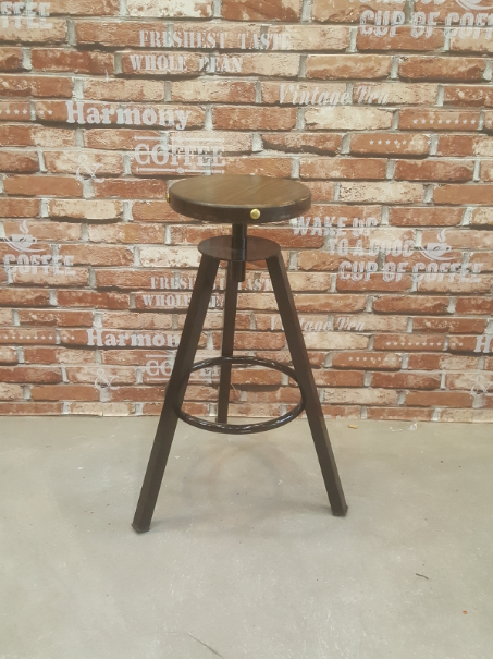 Ghế quầy bar không tựa với khung chân sắt chắc chắn được xử lý bề mặt và phun sơn tĩnh điện, mặt ghế làm bằng gỗ cao su phủ vân gỗ sồi .