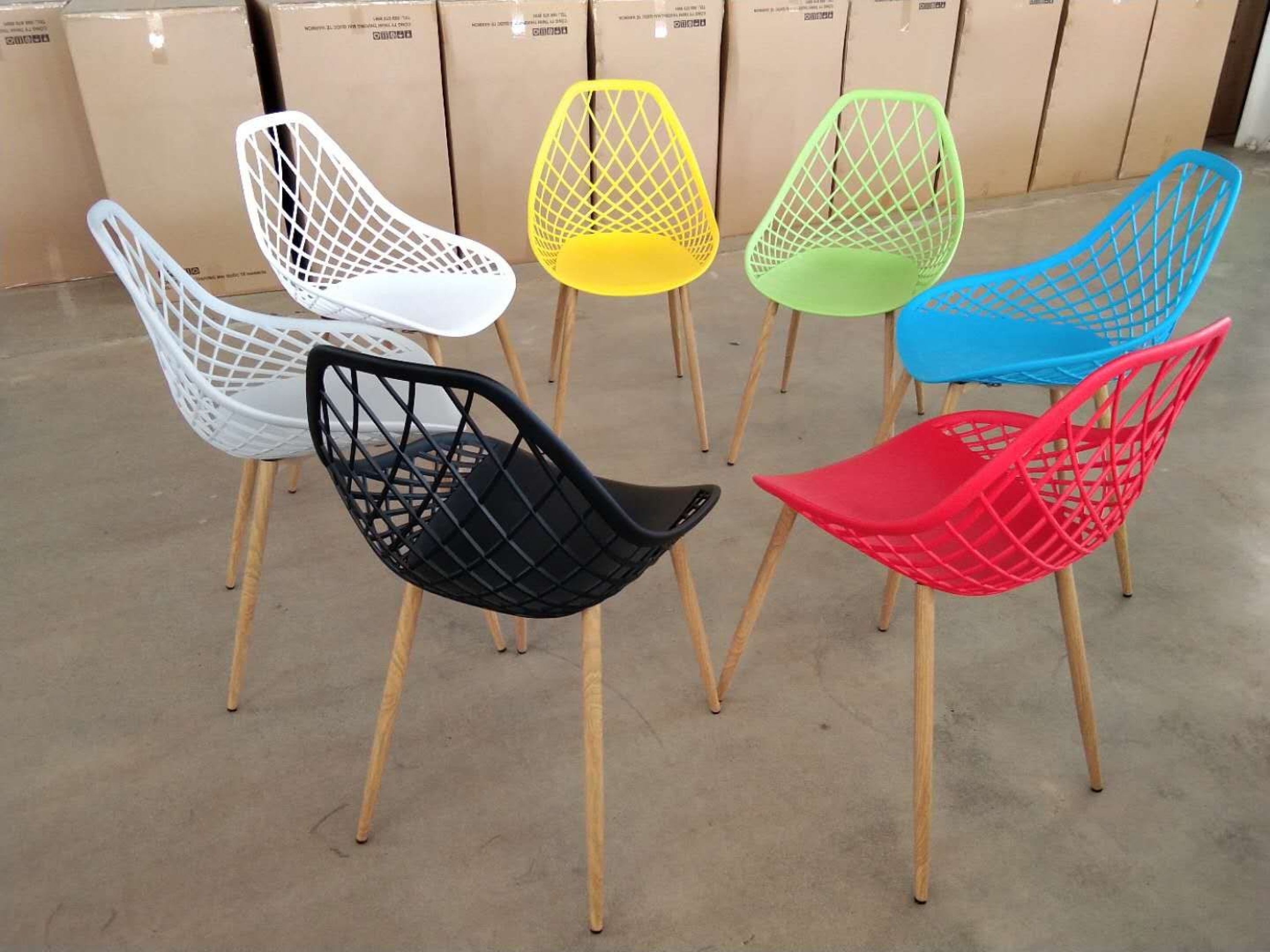 Ghế lưới nhựa chân sắt được phun sơn tĩnh điện giả vân gỗ có nhiều màu sắc cho bạn lựa chọn : trắng, đen , vàng , đỏ , xanh lá , cam, xanh dương