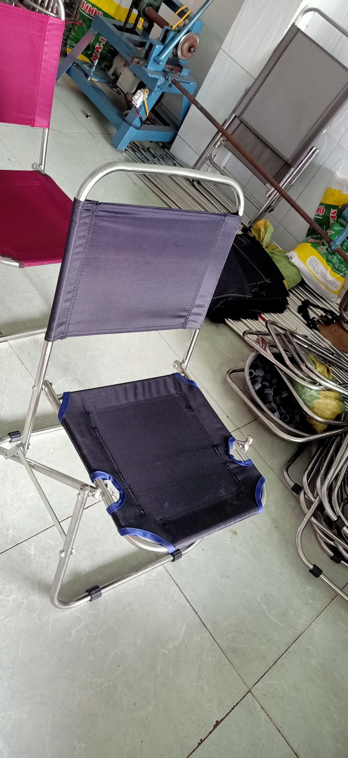Mặt và lưng ghế được làm bằng vải bố dày, đường may chắc chắn , không bai không giãn .