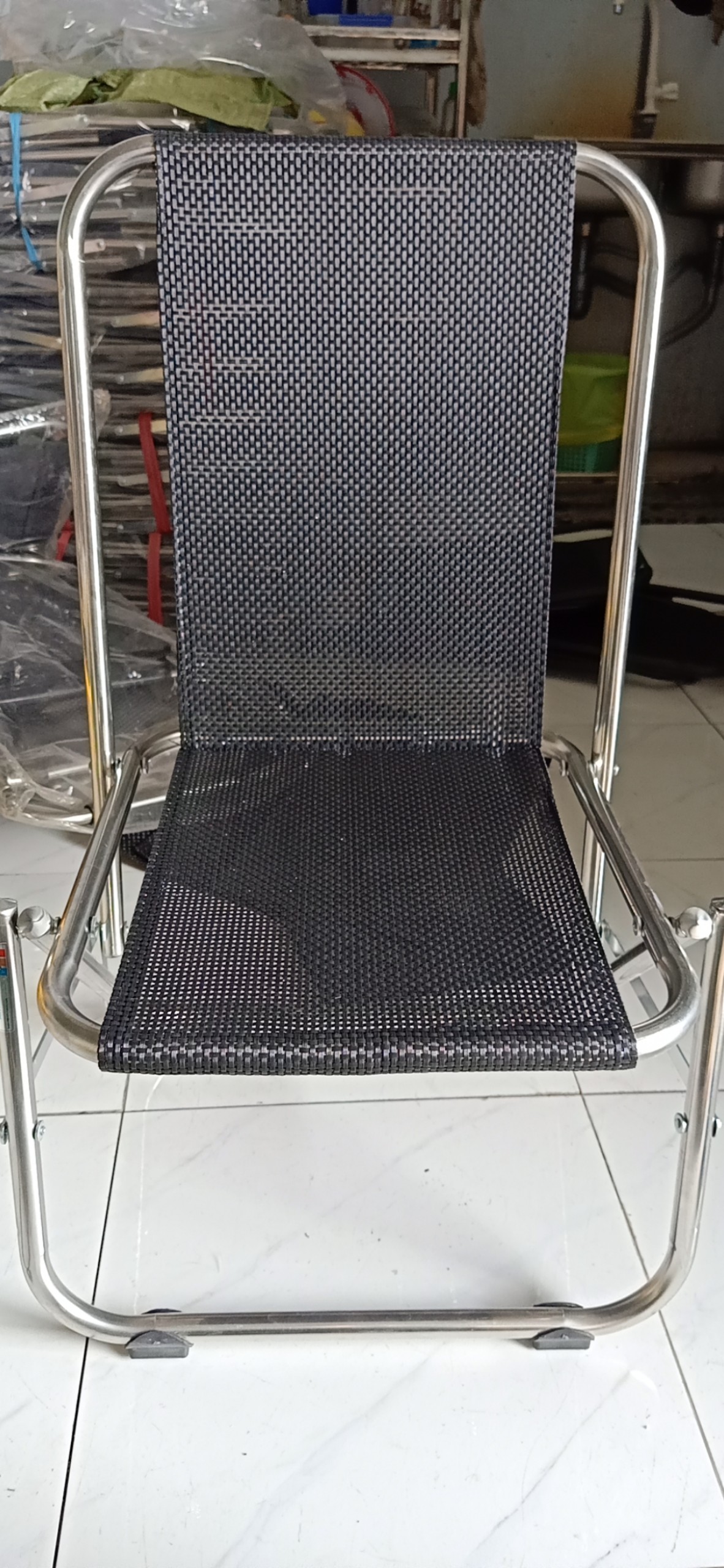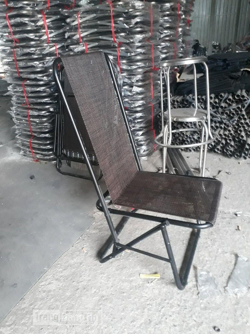 Ghế xếp cafe lưng cao khung chắc chắn được làm bằng Inox 201 ống Ø16 dày 1mm chịu lực tốt lên đến 120Kg .